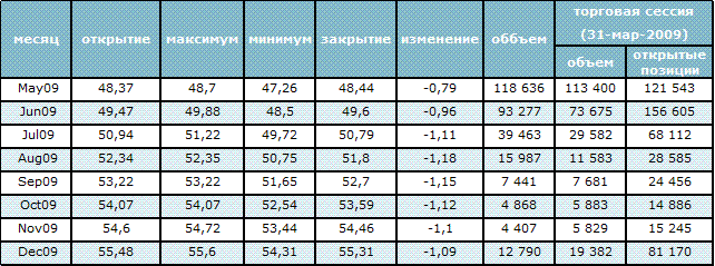 По итогам торговой сессии 1 апреля на Нью-Йоркской товарной бирже Nymex цена майского фьючерса Light Sweet упала на 1.27$, или на 2.6%, и закрылась на отметке 48.39$ за баррель. С начала года нефть подорожала на 9.6%.