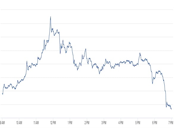 После утреннего взлета на 16%, до рекордных 966 долларов за тысячу кубов, октябрьские фьючерсы на газ на бирже ICE вчера обвалились на 170 долларов и завершили торги в минусе относительно закрытия вторника (-0,8%). За семь часов газ подешевел на 17% — до 796 долларов за тысячу кубометров.