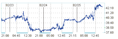 По итогам торговой сессии 25 февраля на Нью-Йоркской товарной бирже Nymex цена апрельского фьючерса Light Sweet выросла на 2.54$, или на 6.4%, и закрылась на отметке 42.50$ за баррель. С начала года нефть подешевела на 4.7%.