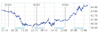 По итогам торговой сессии 4 марта на Нью-Йоркской товарной бирже Nymex цена апрельского фьючерса Light Sweet выросла на 3.73$, или на 8.9%, и закрылась на отметке 45.38$ за баррель. С начала года нефть подорожала на 1.7%.