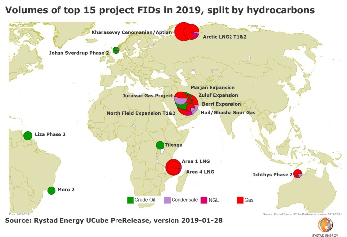 По мере роста спроса на более чистые виды топлива, угроза дефицита СПГ к середине 2020-х годов может привести к санкциям в отношении проектов в Африке, Австралии, на Ближнем Востоке и в России. СПГ-проекты составляют треть от предполагаемого объема ОИР в этом году.
