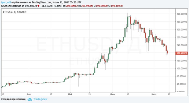 На рынке криптовалют хаос. Котировки стремительно снижаются: ether уже стоит уже всего лишь около $200, bitcoin подешевел до $2300. С чем связана такая паника?