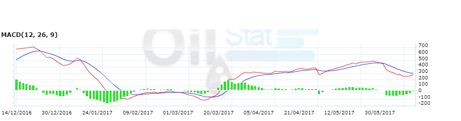 Рынок находится в падающем тренде на протяжении 5 дней. Индикатор MACD поддерживает тренд.