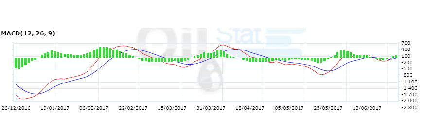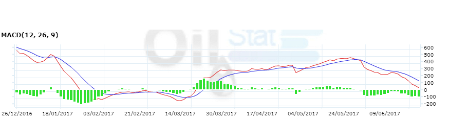 Рынок находится в падающем тренде на протяжении 17 дней. Индикатор MACD поддерживает тренд.