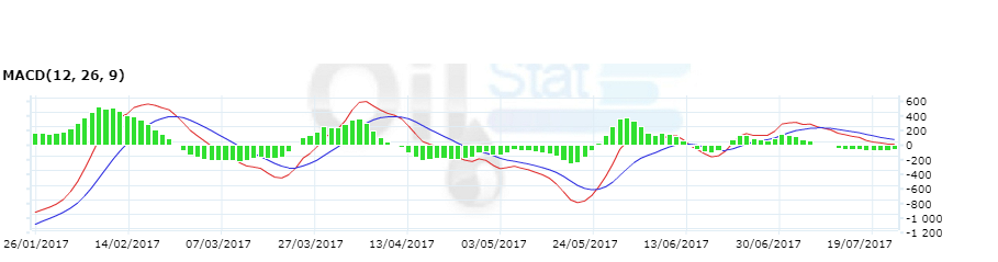 Рынок находится в падающем тренде на протяжении 15 дней. Индикатор MACD поддерживает тренд.