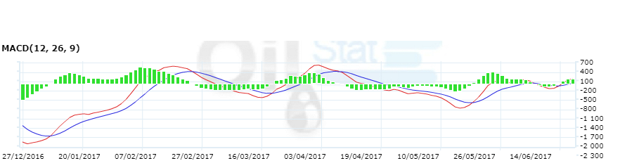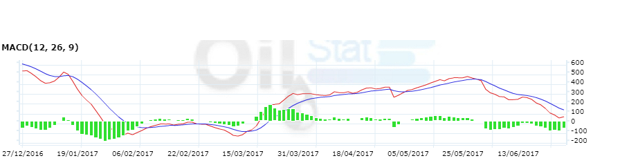 Рынок находится в падающем тренде на протяжении 18 дней. Индикатор MACD поддерживает тренд.