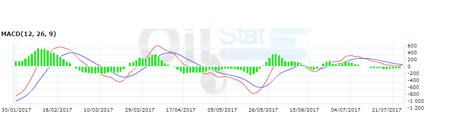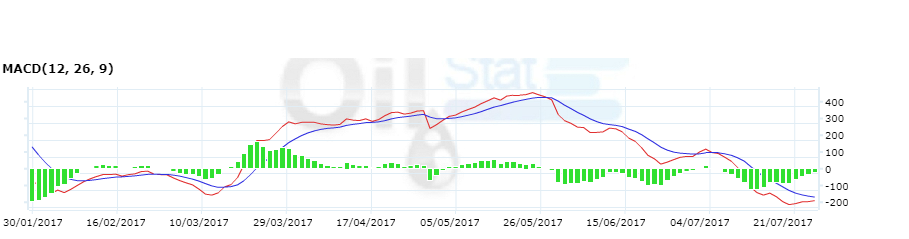 Рынок находится в падающем тренде на протяжении 15 дней. Индикатор MACD поддерживает тренд.