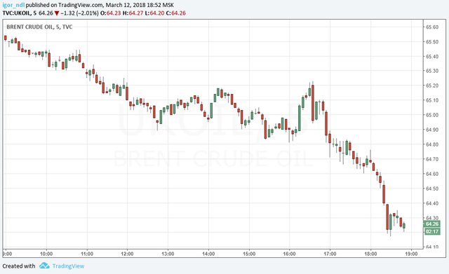 Цены на нефть перешил к резкому снижению. Баррель североморской смеси Brent теряет 2%, WTI — почти 2,5%. Формальным поводом послужили сообщения об отсутствии договоренности о сотрудничестве между сланцевыми компаниями США и ОПЕК.