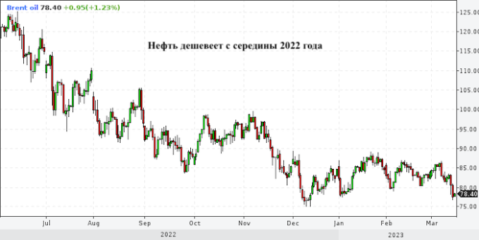 В последние дни паника, спровоцированная крахом Silicon Valley Bank, перекинулась на нефтяной рынок, что привело к снижению цен. На момент публикации нефть марки Brent продается по цене $78.4 за баррель, на 1.4% выше относительно уровня закрытия во вторник.