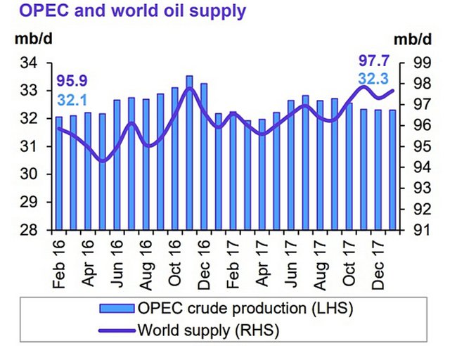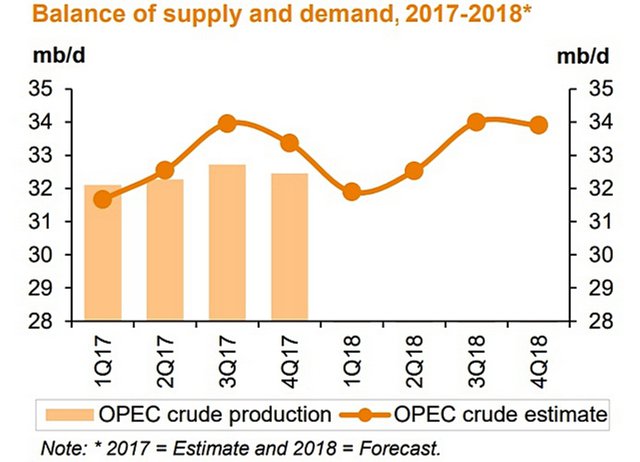 В 2018 г. спрос на нефть ОПЕК, как ожидается, составит 32,9 млн б/с, оставшись почти на том же уровне, что и в 2017 г.