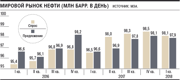 Цель соглашения об ограничении добычи нефти ОПЕК+ — снижение запасов в странах ОЭСР до среднего за пять лет уровня — может быть достигнута уже в мае, ожидает Международное энергетическое агентство (МЭА). По подсчетам экспертов, Россия и Саудовская Аравия от участия в этой сделке в первом квартале 2018 года получали дополнительные $121 млн в день по сравнению с 2017 годом. В первые три месяца этого года мировой рынок нефти двигался к балансу: при спросе в размере 98,1 млн баррелей в день суммарное предложение добычи составляло 97,9 млн.