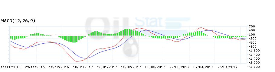 Рынок находится в падающем тренде на протяжении 17 дней. Индикатор MACD поддерживает тренд.