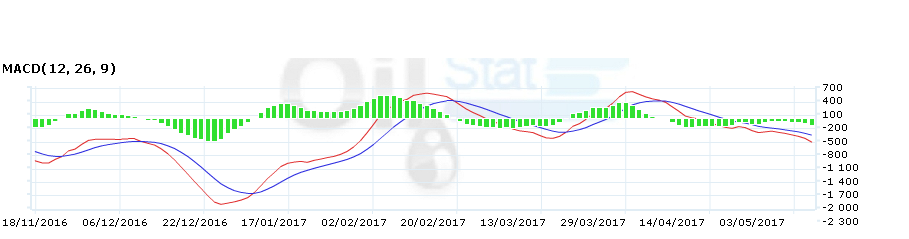 Рынок находится в падающем тренде на протяжении 22 дней. Индикатор MACD поддерживает тренд.