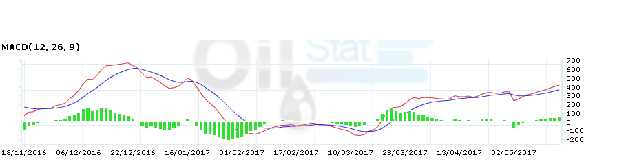 Рынок находится в растущем тренде на протяжении 42 дней. Индикатор MACD поддерживает тренд.