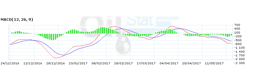 Рынок находится в падающем тренде на протяжении 26 дней. Индикатор MACD поддерживает тренд.