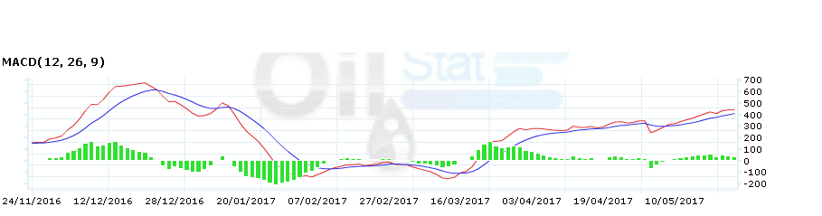 Рынок находится в растущем тренде на протяжении 46 дней. Индикатор MACD поддерживает тренд.