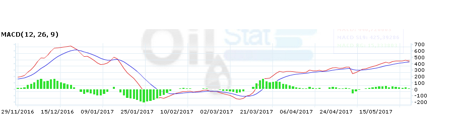 Рынок находится в растущем тренде на протяжении 49 дней. Индикатор MACD поддерживает тренд.