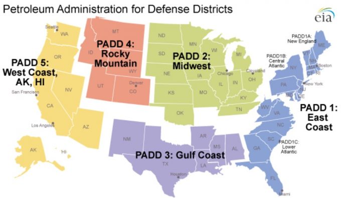 В регион PADD 4 нефть поставлялась из Северной Америки — 250 tb/d.