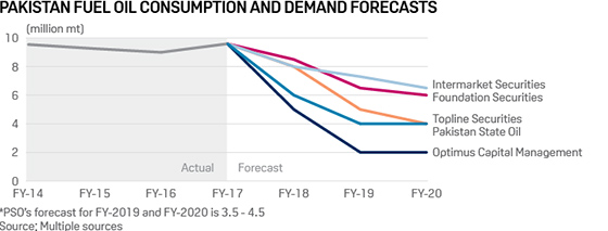 Импорт жидкого топлива может сократиться до 60% к 2019-2020 годам, как только энергетический сектор переключится на газ, сказал Fawad Khan из BMA Capital. Ожидается падение импорта до 2.64 миллионов тонн в 2019-2020.
