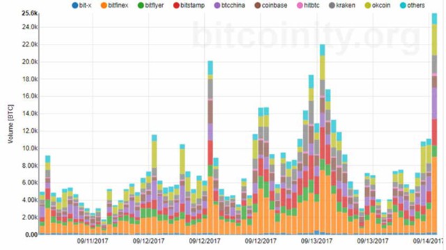 Кстати, стоит отметить, что на данный момент биткоин в Китае торгуется примерно по 20 тыс. юаней, что соответствует примерно $3 тыс., то есть между биткоином в долларах и юанях есть существенная разница.