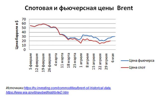 Рынок пребывает в аномальном состоянии, что видно из сравнения фьючерсной и спотовой цен Brent.