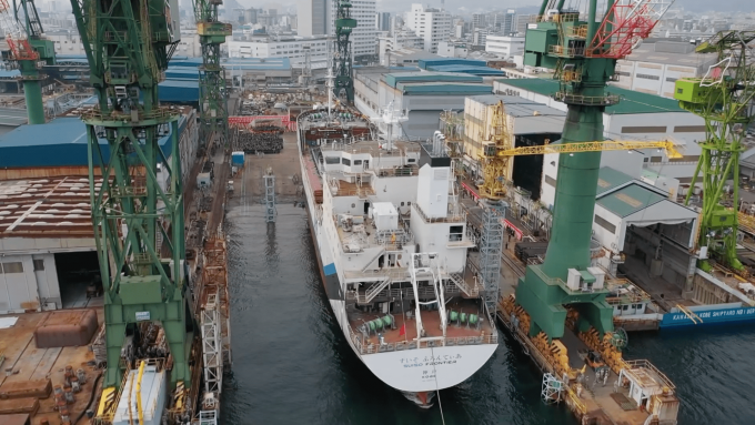 Строительство судна завершится к концу следующего года после установки резервуара для хранения сжиженного водорода с двойными стенками объемом 1.25 тыс. кубометров производства Harima Works.