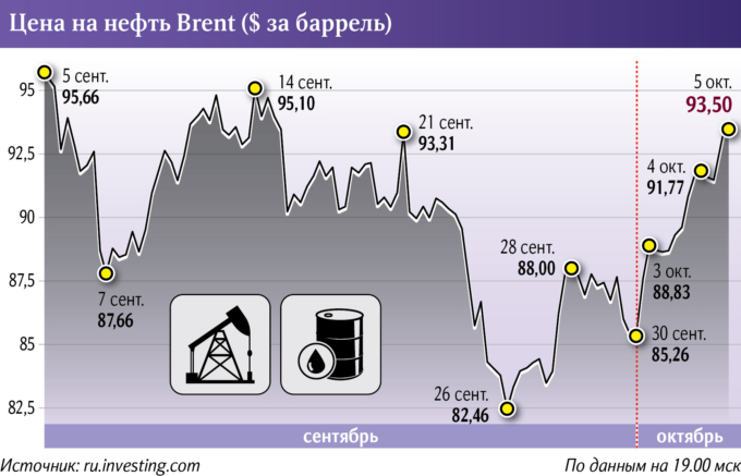 С учетом октябрьского решения ценовая волатильность будет сохраняться из-за множества факторов неопределенности, но колебания могут сместиться на более высокий уровень, возможно постепенное закрепление котировок выше $95 за баррель Brent, заключил Дмитрий Александров.