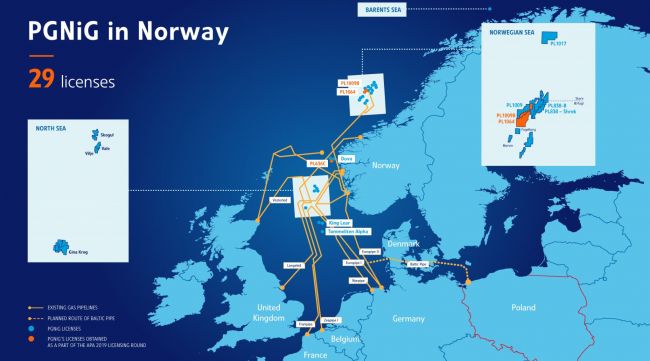 «Приобретение месторождений на континентальном шельфе Норвегии — один из инвестиционных приоритетов PGNiG. Наша цель — получить как можно больше собственного газа для поставок из Норвегии в Польшу к запуску «Балтийского газопровода», — заявил председатель правления польской госкомпании Ежи Квецинский.
