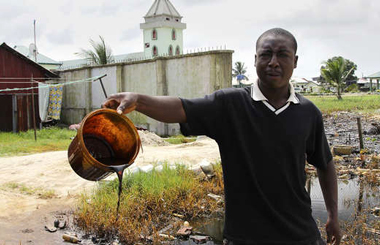 На некогда кишащих рыбой заливах рядом с Бодо (город в нигерийской дельте) сейчас по берегам разбросано огромное количество рыбных скелетов. Заливы эти покрыты пленкой нефти вот уже шесть лет. Только недавно местные жители получили компенсации от Shell, нефтяной компании, ответственной за эту аварию. Впервые за долгое время у рыбаков появились хоть какие-то деньги для того, чтобы начать новое дело, починить дом и отправить детей в школу. Если бы у жителей региона Огонилэнд в самой дельте была возможность загадать желание, без сомнения они бы загадали, чтобы в Нигерии никогда не было нефтяного бизнеса. «Посмотрите вокруг», — говорит мэр маленького городка Би-Дер, неподалеку от Бодо. Он показывает на смертельно-черное побережье, где по-прежнему не ликвидированы последствия разливов. «Нет ни питьевой воды, ни возможности ловить рыбу. Что хорошего принесла нам нефть?»