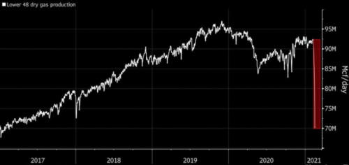Из-за необычайно холодной в США объемы производства газа резко упали на одну пятую, а люди живут без электричества.