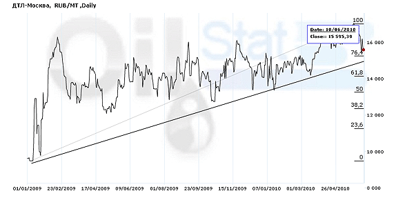 Московский ДТЛ поднялся до максимума 2009-2010гг от 25 мая 2010 г. После чего немного припал, в соответствии с корреляцией с мировым рынком, в настоящее время ДТЛ, вероятно, скоро начнет разворот вверх.