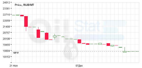 Часть компаний-производителей может поддержать цены на внутреннем рынке при помощи увеличения поставок бензина на экспорт на текущей неделе. Разница между стоимостью высокооктанового бензина Аи-92 на внутреннем рынке и экспортной альтернативой сокращается, что делает внешнеторговую конъюнктуру привлекательнее, чем раньше. За счет увеличения экспортной составляющей в экономике компаний темпы снижения цен на бензины могут значительно замедлиться. К тому же, некоторые компании, скорее всего, ожидают повышения спроса на бензин в предновогодний период. Уже во второй половине прошедшей недели наблюдалось некоторое ограничение в предложении по основным видам топлива. Возможно, это подтолкнет некоторые компании к повышению отпускной стоимости продукции, и рынок покажет некоторую стабильность. Но возможно, что трейдеры не будут спешить с покупкой нефтепродуктов по более высоким ценам.