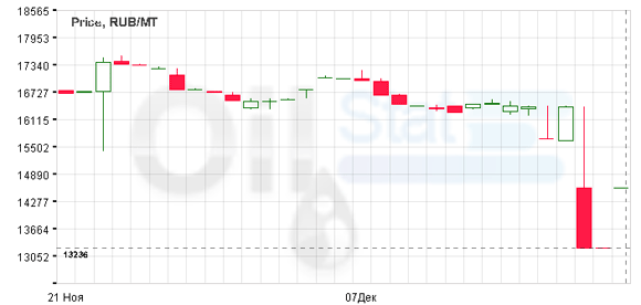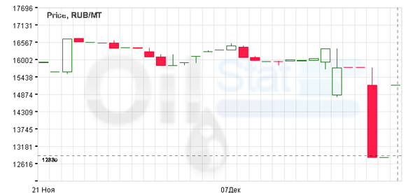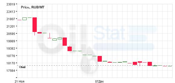 14 декабря на оптовом рынке светлых нефтепродуктов Володарской ЛПДС котировки основных видов моторного топлива продемонстрировали разнонаправленную динамику. На рынке бензинов впервые за последние два месяца произошел рост котировок; на рынке легких дистиллятов котировки летнего дизельного топлива продолжили снижаться, а присадочное дизтопливо, так же как и бензины, подорожало. На оптовом рынке бензинов Володарской ЛПДС в первый день текущей рабочей недели единой политики ценообразования среди трейдеров не наблюдалось. Некоторые участники повысили свои отпускные цены, чтобы приблизить их к средним рыночным ценам. Другие игроки рынка продолжили снижать цены на бензин, мотивируя это прежде всего низким потребительским спросом на топливо. Некоторые компании временно прекратили продажу бензина из-за отсутствия спроса на него.