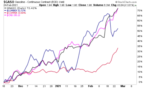 И нет никаких признаков, что тенденция изменится. Буквально в день, когда Пауэлл сделал свое безумное заявление, цены на бензин подскочили на 2%, на нефть — на 2.5%, на медь — на 3%.