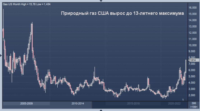 Природный газ США вырос до 13-летнего максимума