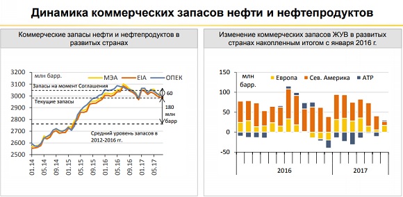 Несмотря на рост потребления и на то, что за 9 месяцев действия венского соглашения избыточные запасы сократились на 60 млн барр — это всего 25% от необходимого сокращения до выхода на средний уровень 2012-2016 гг. Анализ показывает, что заявленная цель нормализации уровня запасов пока не полностью реализована и говорить о переломе рано.