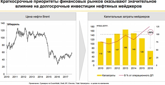 Говоря о ситуации на мировом рынке нефти И. Сечин отметил, что мейджоры и другие публичные компании делают большой акцент на отслеживании краткосрочных ценовых индикаторов, и в результате учитывают спекулятивную волатильность в инвестиционных планах. Он напомнил, что в 2014-2016 гг инвестиции в разведочное бурение крупных компаний снизились в 2,7 раза – сейчас идет ускоренное восстановление.