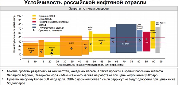 Но это равновесие пока хрупкое и неустойчивое — сланцевая добыча США, в которой накоплены большие запасы пробуренных, но незаконченных скважин, может, при соответствующем уровне цен, дать в 2018 г значительный прирост добычи, и вновь дестабилизировать рынок. Поэтому, по словам И. Сечина, не стoит в ближайшее время ожидать всплеска нефтяных цен.