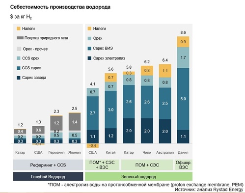 Себестоимость производства водорода