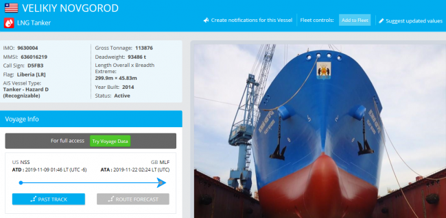 Например, за последние три месяца газовоз «Великий Новгород» совершил два рейса из терминала СПГ Sabine Pass в Европу — в Италию и Великобританию. На Туманном Альбионе судно «Совкомфлота» выгрузило очередную партию американского СПГ на прошлой неделе.