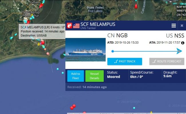 В то же время газовоз «Мелампус» прибыл в Мексиканский залив и также, как и «Маршал Василевский», ожидает подхода к терминалу СПГ.