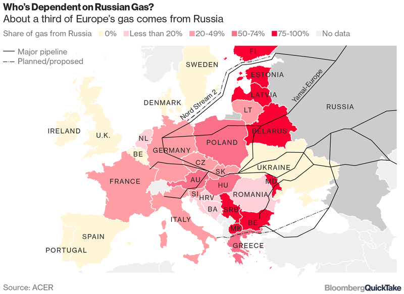 В прошлом году президент США подписал закон, дающий ему право налагать санкции против инвесторов или подрядчиков, участвующих в строительстве экспортных трубопроводов России. В Германии правительство канцлера Ангелы Меркель изложило планы расширения инфраструктуры СПГ, чтобы уменьшить зависимость страны от поставок, поступающих по трубопроводам из России и Норвегии.