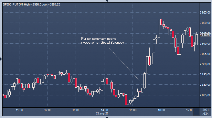 Перед открытием торговой сессии среды фьючерсы на индекс S&P 500 взлетели на 1.5% после появления обнадеживающих новостей о ходе клинических испытаний противовирусного препарата Ремдесивир по лечению коронавируса.