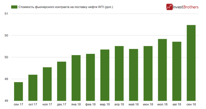 Стоимость фьючерсного контракта на поставку нефти марки WTI (дол.)