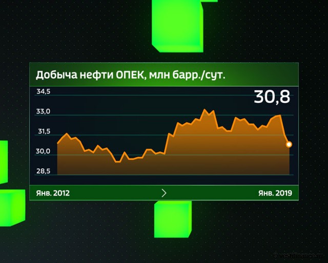 Новое соглашение ОПЕК+, при котором страны картеля сокращают добычу на 800 тыс. баррелей в сутки, а страны не-ОПЕК — на 400 тыс.баррелей в сутки, было достигнуто 7 декабря 2018 г. Соглашение продлено на полгода с возможным пересмотром в апреле 2019 г.