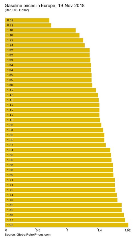 Дизель является более востребованным топливом в Европе, в связи с этим разговоры о повышении налогов на дизель привели к массовым протестам во Франции.