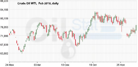 По итогам торговой сессии 23 декабря на Нью-Йоркской товарной бирже Nymex цена февральского фьючерса Light Sweet выросла на $2.27 или на 3.05% и закрылась на отметке $76.67 за баррель.