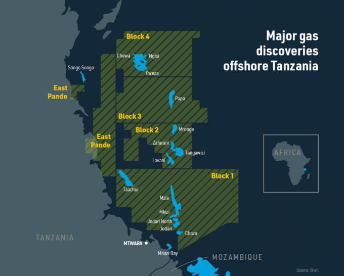 Начиная с 2010 г. на танзанийском шельфе (в бассейне Mafia Deep) были сделаны крупные открытия углеводородного сырья. В 2014 г. партнеры по совместным предприятиям на разработку Блоков 1 и 4, а также Блока 2 подписали предварительное соглашение о строительстве на побережье Танзании завода по производству сжиженного природного газа. Equinor принадлежит 65% доля в разработке Блока 2, ее партнером с долей в 35% является ExxonMobil. Shell владеет 60% долей на Блоках 1 и 4, которые она осваивает совместно с британской Ophir Energy (20%) и сингапурской Pavilion Energy (20%). Однако танзанийские власти долго не могли прийти к соглашению с международными нефтегазовыми компаниями, в результате реализация проекта неоднократно откладывалась. Президент Джон Магуфули с недоверием относился к иностранцам, заинтересовавшихся разработкой углеводородного сырья на шельфе Танзании, настаивая на жестком государственном контроле в этой области. Но прогресс, достигнутый в соседней стране в рамках Mozambique LNG мощностью 12,88 млн т СПГ в год американской компании Anadarko, законтрактовавшей уже большую часть сжиженного природного газа этого планируемого проекта, привел к подвижке и с танзанийским проектом.