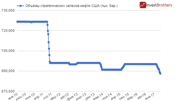 Напомним, что США уже продают часть своих резервов с целью обновления запасов и ремонта мощностей. Согласно утвержденному плану в 2017 г. будет продано около 18 млн баррелей сырья. По итогам середины мая Соединенные Штаты уже реализовали 7 млн баррелей. Таким образом, остается еще 11 млн. В следующем году планировалось продать еще порядка 25 млн баррелей.