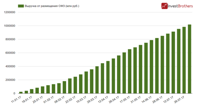 Объем вырученных средств от продажи ОФЗ превысил 1 трлн рублей.
